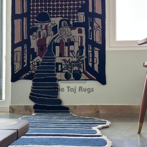 • A one-of-its-kind hand-tufted masterpiece that begins as a wall-mounted artwork and seamlessly flows onto the floor.